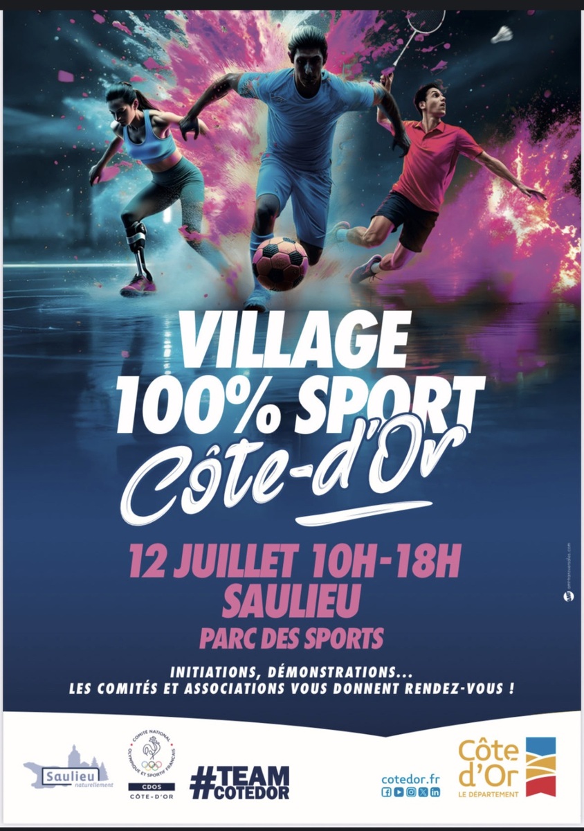 Le samedi 12 juillet 2025, notre club a eu l'immense privilège de participer au Village 100 % Sport organisé par le département de la Côte-d'Or à Saulieu. Cette journée fut tout simplement exceptionnelle, rassemblant des passionnés de sport de tous âges dans une ambiance conviviale et dynamique.