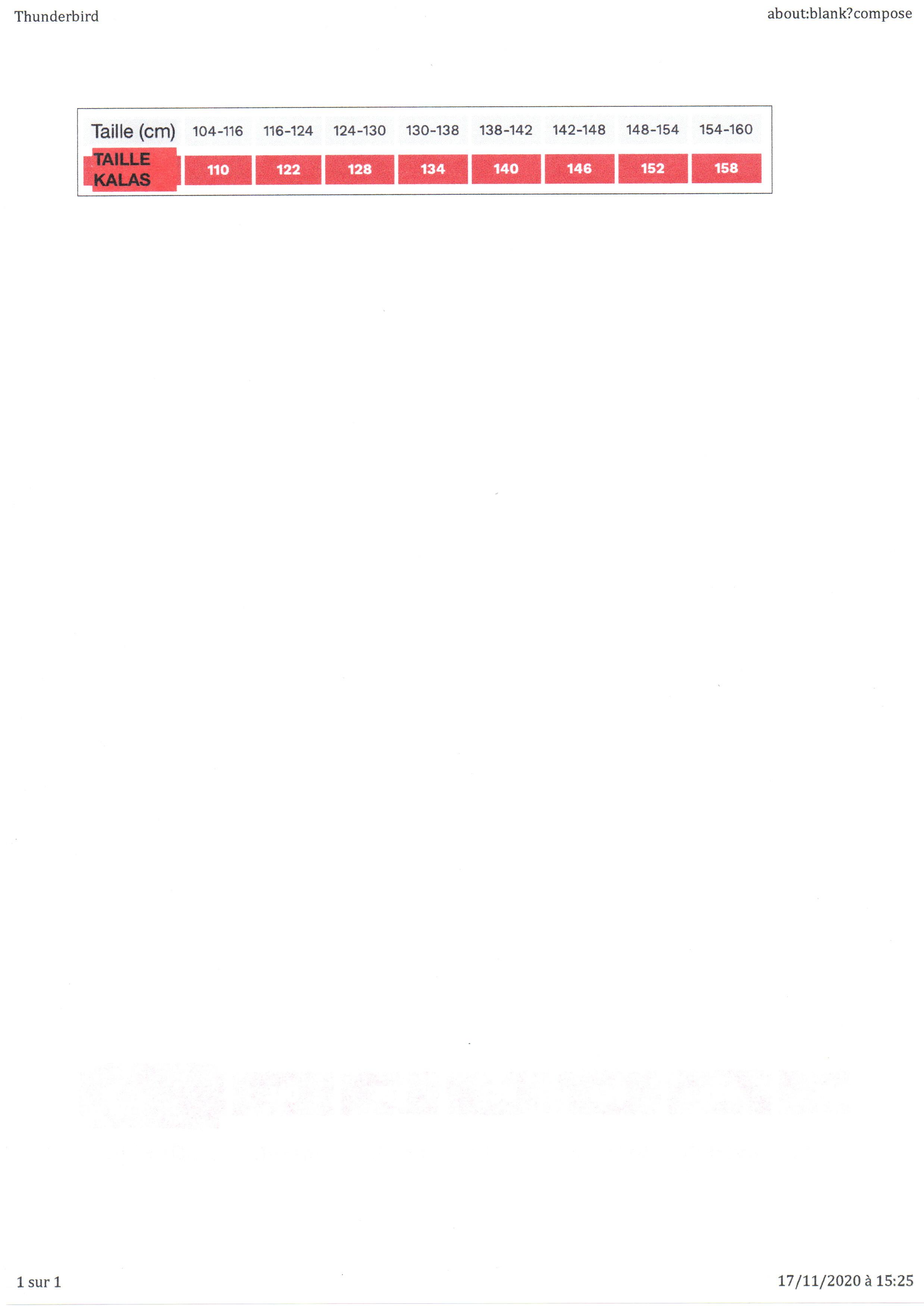 Guide des tailles pour les tenues Junior